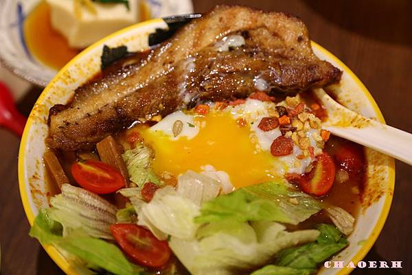 溫泉蛋弄破,蛋汁與熱湯結合,湯頭變的濃郁些