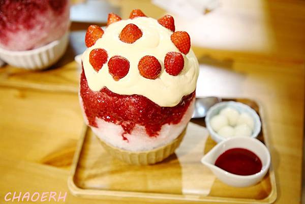 內容物有刨冰.草莓.起司.椰果.白玉.草莓醬汁
