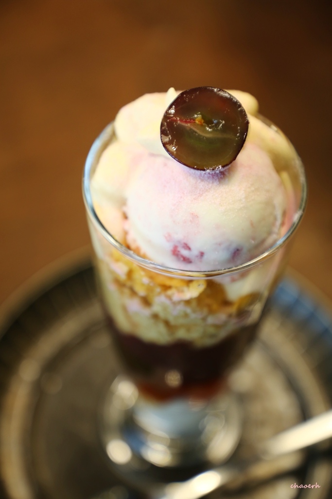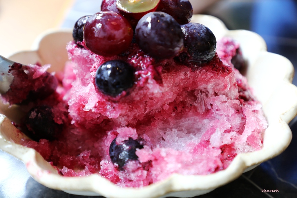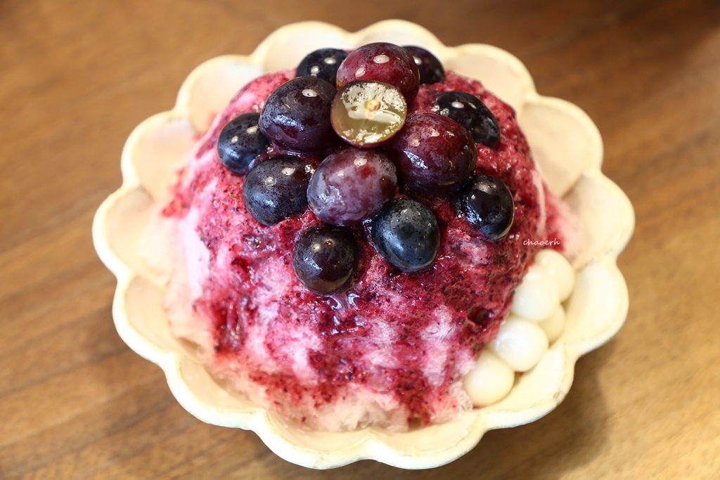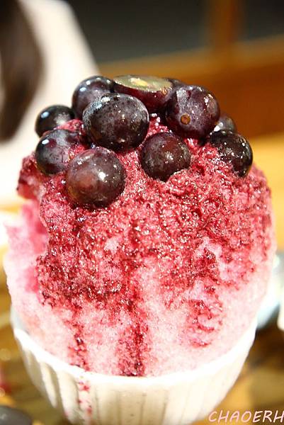 內容物很簡單,只有刨冰加上新鮮葡萄醬汁.巨峰葡萄.椰果.白玉