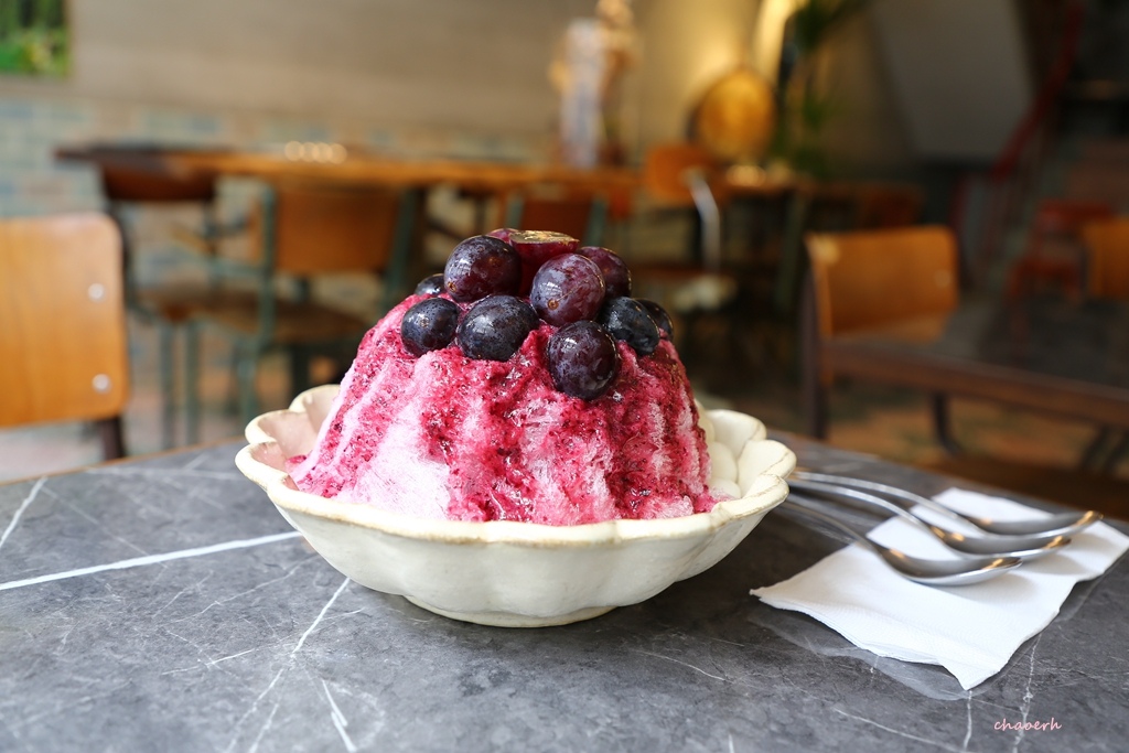但刨冰造型很巨大,上頭擺滿新鮮巨峰葡萄