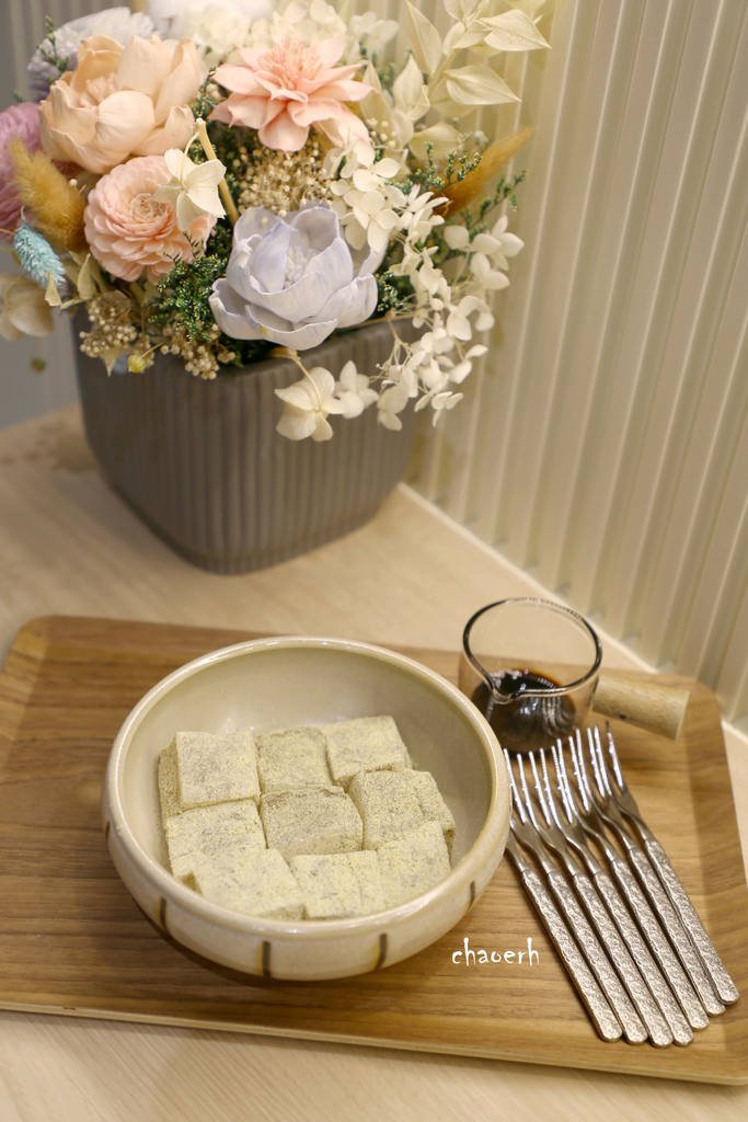 QQ蕨餅淋上黑糖醬,充滿甜蜜滋味