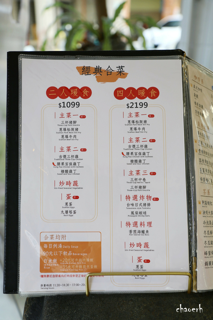 2人合菜均附 每日例湯、90元飲品、白米飯(+20元升級肉燥飯、+35元升級荷包蛋飯)