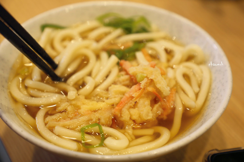 湯頭柴魚風味,清爽甘甜,麵條彈牙有Q度,再搭配一口吸滿湯汁的天婦羅